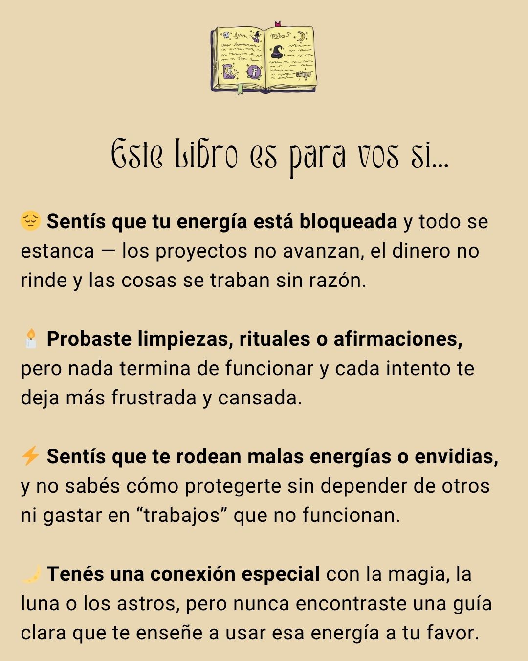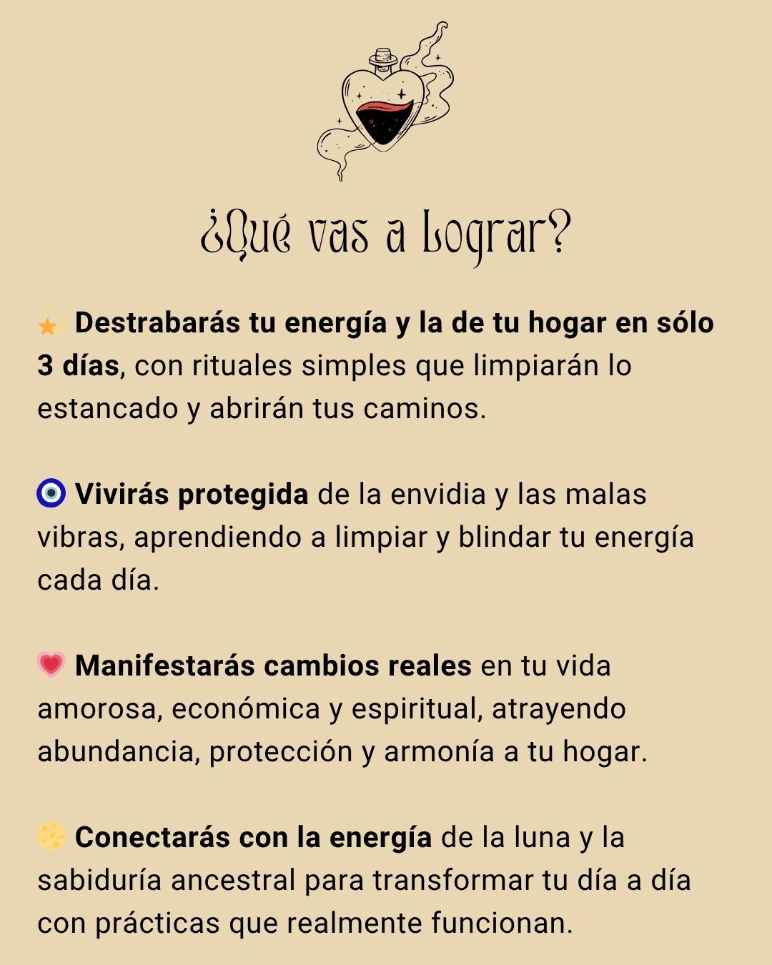 🌟 Porque no es un “ritual suelto de internet”, sino un camino estructurado y ancestral, probado por miles de personas. Cada práctica está diseñada para ser clara, sencilla y aplicable en minutos, con fundamentos que conectan la energía, la intuición y la tradición mágica. Aquí tendrás una guía completa, no fragmentos aislados.