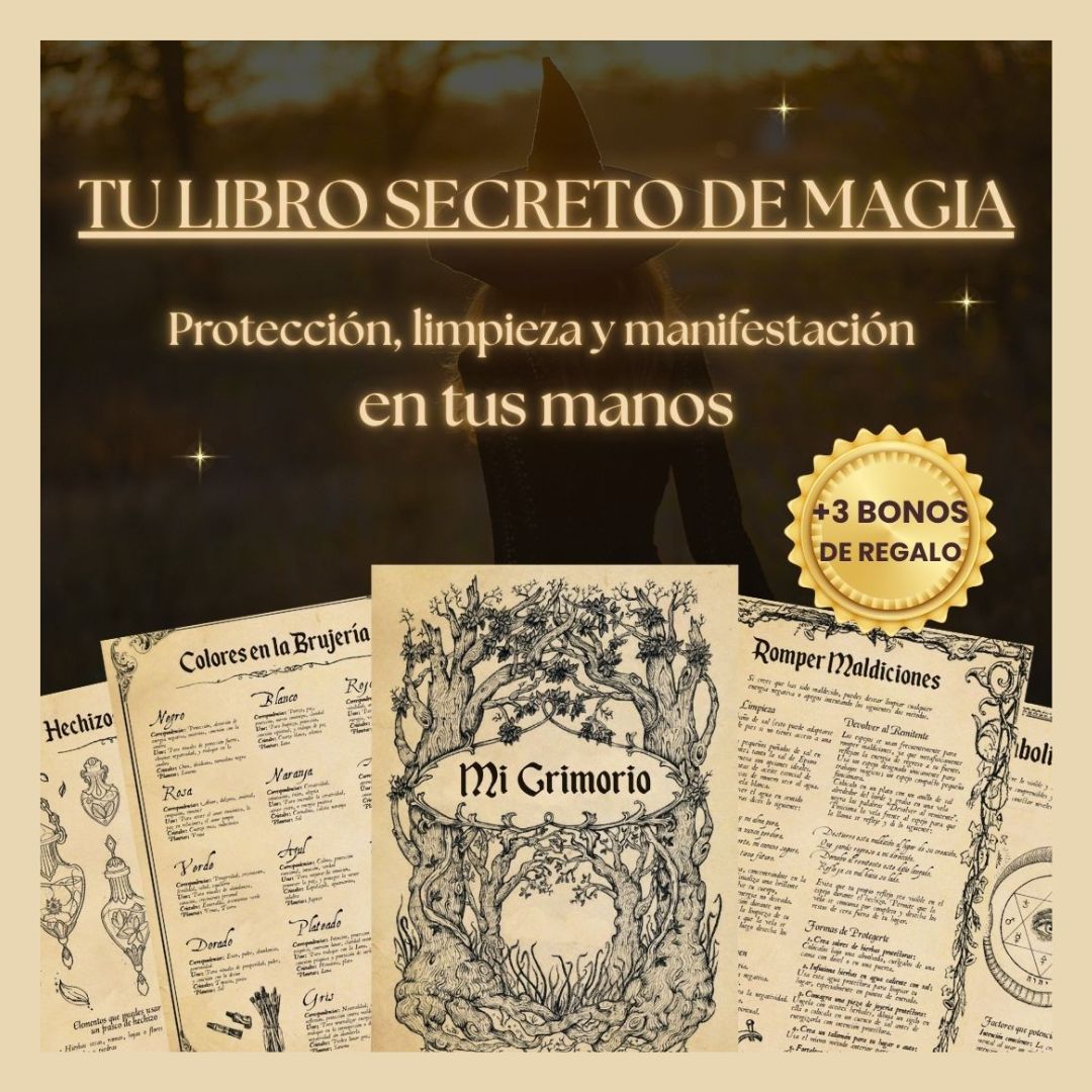 ✨ Obtendrás tu Grimorio de 50 páginas en PDF, que puedes leer desde cualquier dispositivo o imprimir para tenerlo en papel. Además recibirás la Guía de Velomancia y 3 bonos exclusivos para potenciar tu práctica.
